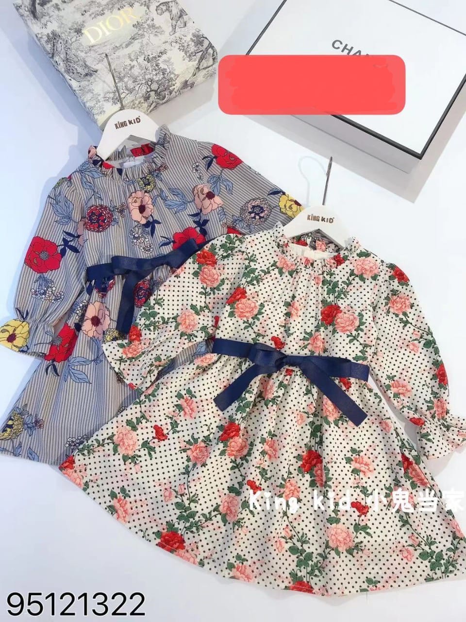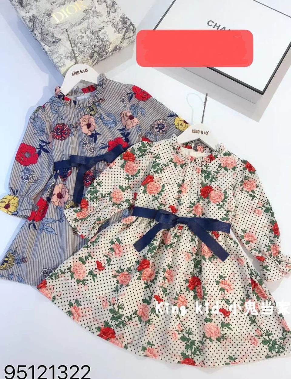 Dress anak motif flower lengan panjang, dengan aksen pita pada bagian pinggang. Size Chart :