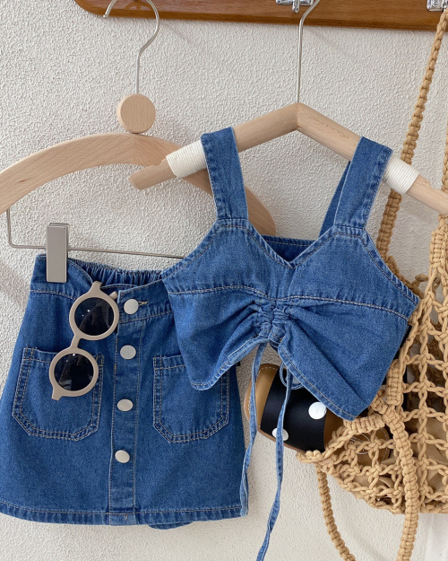 Bahan : Soft Denim Setelan anak perempuan terdiri dari kemeja crop lengan panjang dipadukan dengan mini skirt berbahan soft denim. Lembut dan tidak panas saat digunakan Size Chart : Size 100 (3 Tahun) Lebar Dada : 33cm, Panjang : 35cm, Lengan : 31cm, Lebar Pinggang : 19-33cm, Panjang Rok: 26cm…